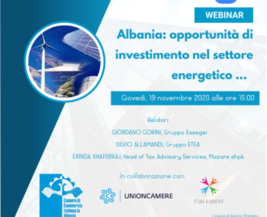 Il webinar dal tema “Albania: opportunità di investimento nel settore energetico” ha dato la possibilità alle imprese italiane di esplorare le opportunità che il mercato albanese offre nel settore energetico e tramite l’apposita chat di approfondire i punti di loro interesse, creando un’importante sessione interattiva con i relatori ed ospiti dell’evento informativo.